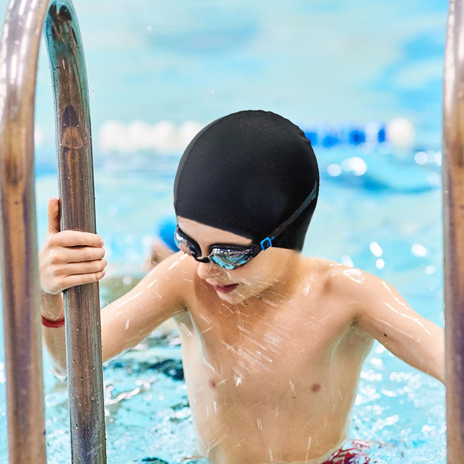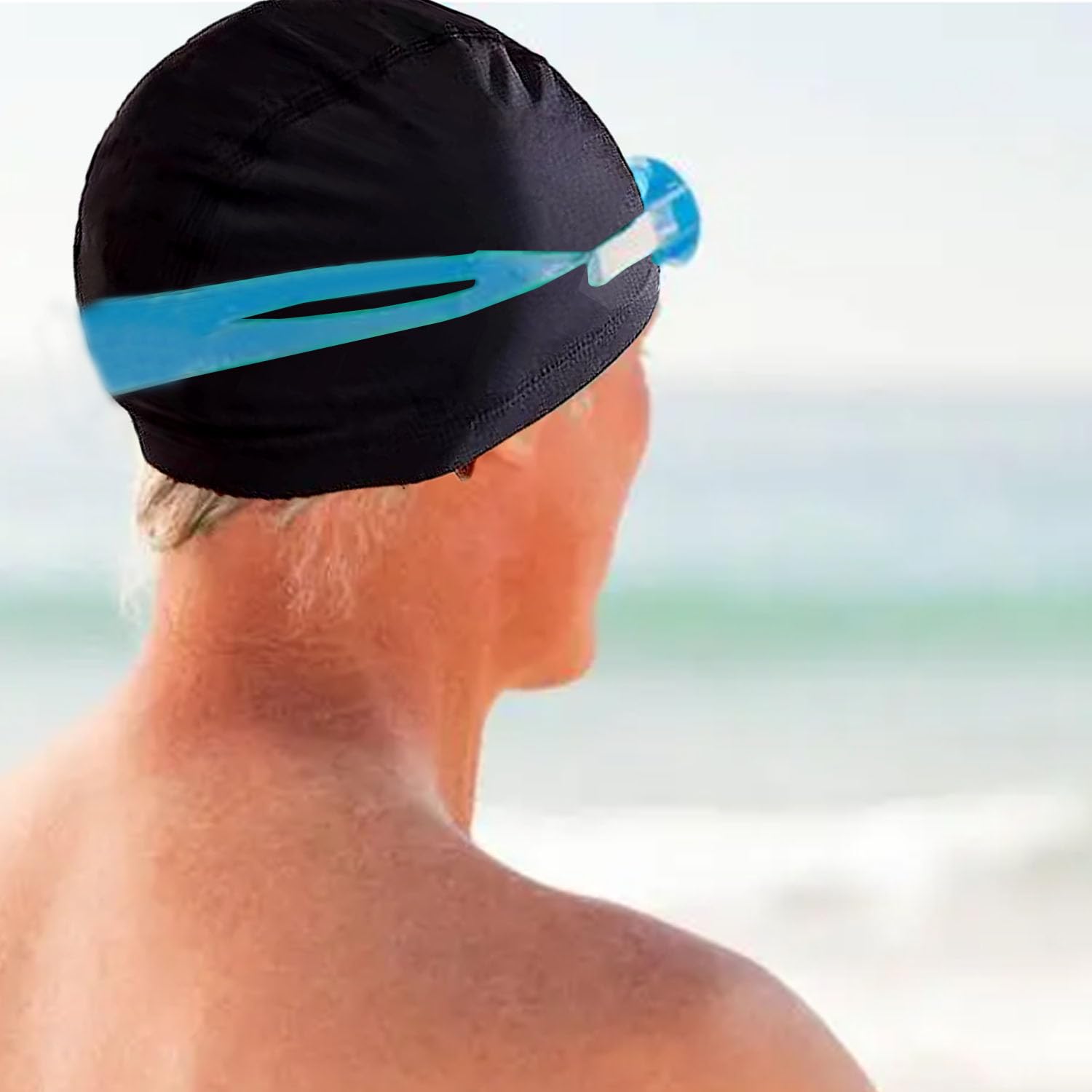 2 bucati casca de inot unisex pentru femei si barbati - elastica, neagra, material textil pentru adulti